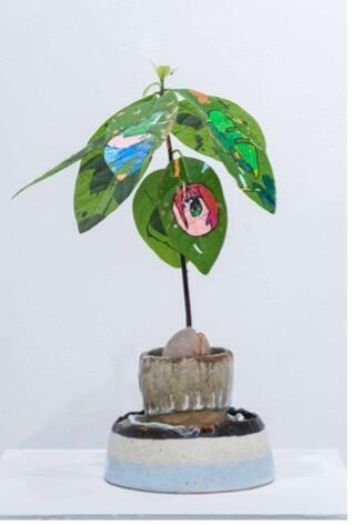 2020 鉢、土、アボカドの木、アクリル絵の具