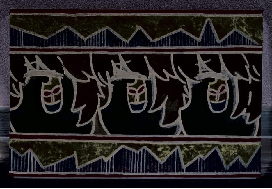 キャラクターと文様を組み合わせた絵画作品 過去に『キャラべスク』展で展示した作品を中心に、新作も交えて展示予定。 画像の作品のサイズは 200x300mm